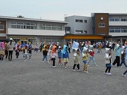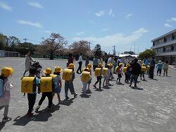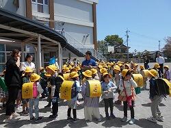 初日の今日は、5年生が昨年の学習を活かし、下級生に通学路の危険個所を教えながら下校していました。