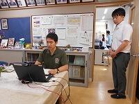 学校に戻ってくると、消防署の方に「AED」の使い方を教えていただきました。