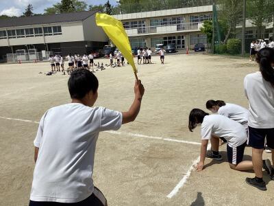 二年体育、100m走です。去年よりタイムが縮まるように、準備運動から真剣に取り組んでいました。