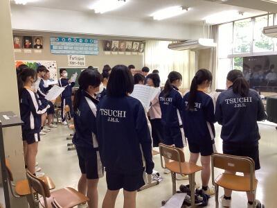 三年音楽、合唱練習です。今年度で初めての練習でしたが、廊下まで響くほど迫力がありました。