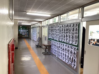 1,2年生の廊下にも生徒たちが心を込めて書いた書き初めが掲示されています。一文字一文字に新しい一年への決意や抱負が込められており、その力強い筆使いが見る人の心を動かします。ぜひ学校にお越しの際は、立ち止まり生徒たちの思いが込められた作品をじっくりとご覧ください。