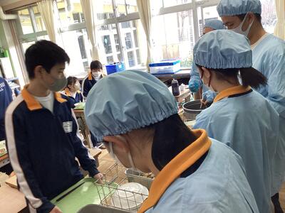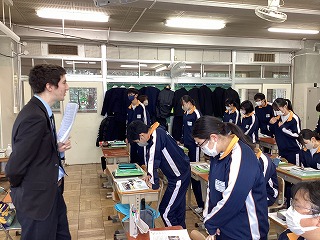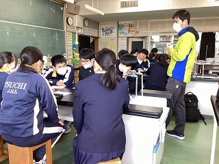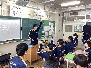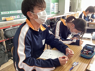 新入生はそれぞれのクラスに分かれて中学生の授業を体験しました。