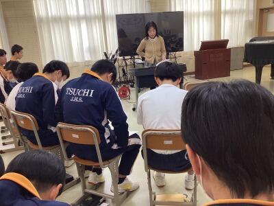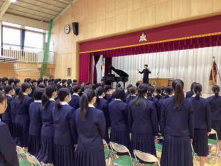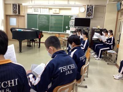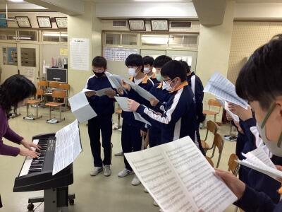 3年音楽、三送会と卒業式で歌う曲の音取りです。クラス全体で素晴らしい歌声を響かせていました。