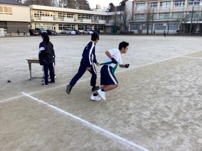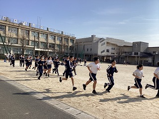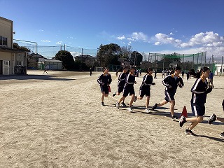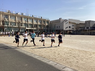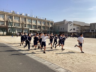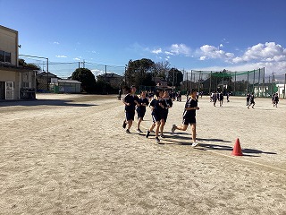 三年体育、グラウンドでの持久走です。
