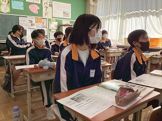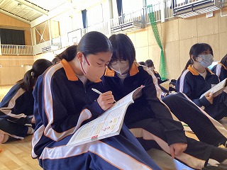 インフルエンザなどの感染症拡大を危惧して、教室にて放送を聞く形で実施しました。