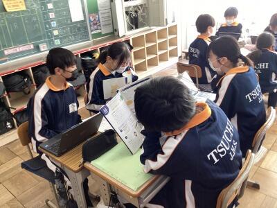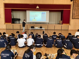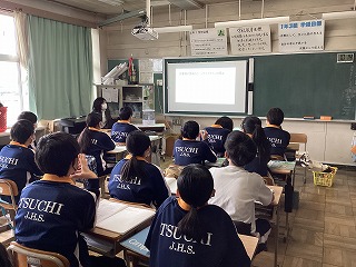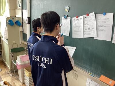 生徒会では土中学校についてを写真とともに説明していました。
