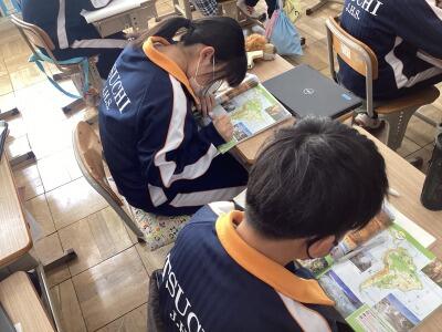問題の地名を競い合って探していました。