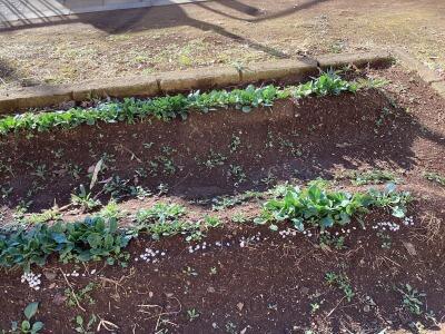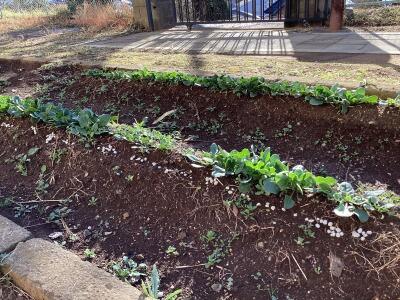 二年技術、前回埋めた豆苗の経過確認です。置いた環境によって生え方の違いについて考察していました。