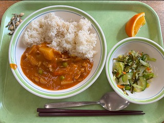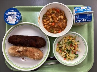 今日の給食は洋風の味わいが楽しめる彩り豊かな献立でした。