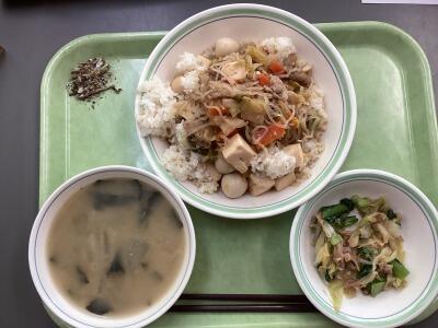 味噌の香ばしさが際立つ豚肉に、さっぱりとした昆布和え、そして根菜の旨味が詰まった味噌汁。バランスのとれた、心も体も温まる給食でした。
