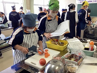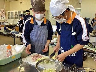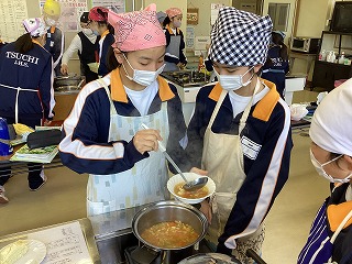 今日の給食は1年1組の考えた献立です。家庭科の授業の一環として、栄養バランスを考えた献立を作成しました。そのグランプリが今月の給食として登場。本日は第一弾です。