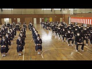 在校生は教室から式に参加しました。普段は式に臨む先輩の後ろ姿を見ている1・2年生ですが,先輩の真剣な表情が見ることができ,よい経験になりました。
