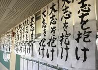 9月10日から再開した駅伝練習,本当にお疲れさまでした。自分との戦いに,諦めそうな時もあったことでしょう。今日は明日の大会に向けた最後の練習でした。自分の目標に向けて,前へ,前へと走る姿に,練習当初とは違うたくましさを感じます。昇降口には,駅伝部の皆さんを応援する看板が設置されました。皆,応援しています。ここまで【練習を続けた】すべての皆さんに,大きな拍手です!明日24日の大会では,それぞれの自己ベストが出るように,心より願っています。