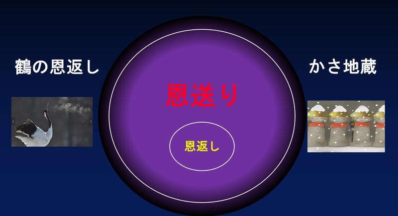 〇宝物などの見返りは直接的ですが、雪の中を凛としてたたずむお地蔵様の姿は、それを見た人の心に、間接的ですが優しさを呼び起こしていると思います。これも「恩返し」というよりは「恩送り」に近いのではないでしょうか?
