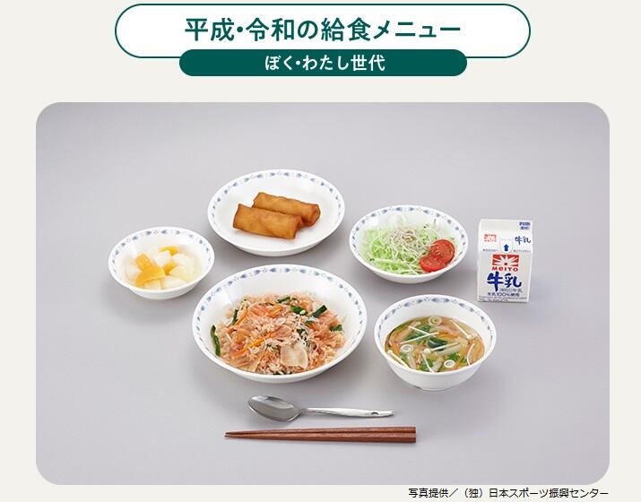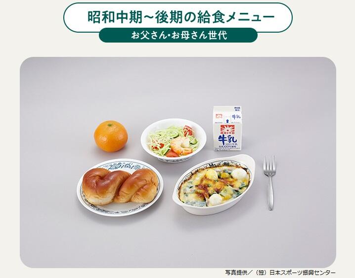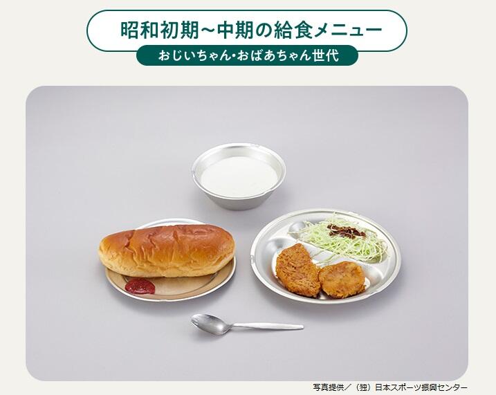 【農林水産省ホームページより:年代別給食メニューの変化 注意:器の変化にも注目してください】