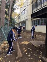土中の木々も色づき、通路や校舎裏が落ち葉で色鮮やかに染められています。委員会活動として、11月下旬から美化委員・美化班の皆さんが「落ち葉掃き」をしています。掃いても掃いても落ちてくる葉ではありますが、懸命に掃除をしていました。12月も引き続き、よろしくお願いします。