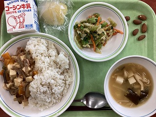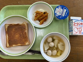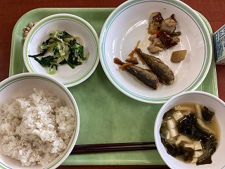 ごま和えは、シンプルながらごまの風味もよくとてもおいしかったです。冷凍りんごで火照った体を冷やし、午後も頑張りました。