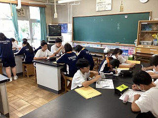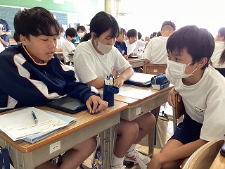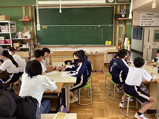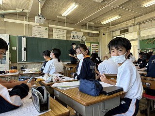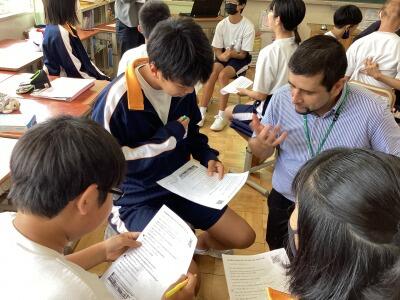 生徒たちはALTの先生と英語で楽しく会話していました。