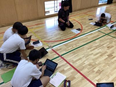1年生英語 柏オンラインイングリッシュキャンプに参加しています。ALTが作成した動画を見て、課題に取り組んでいます。自分たちで動画を撮影し、ALTに返信、その後ALTからコメントが決ます。
