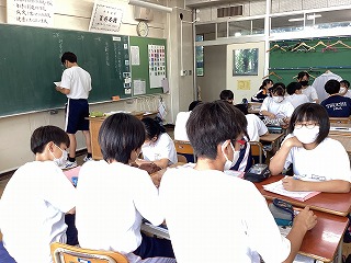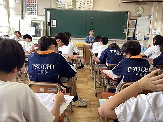 STANDBYの福本さんをお招きし、1学年を対象にいじめ防止授業を行いました。動画を視聴し、自分ならこの後どうするかという問いに対して様々な意見が飛び交いました。