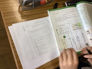 生徒たちは修学旅行の思い出を新聞にしていました。