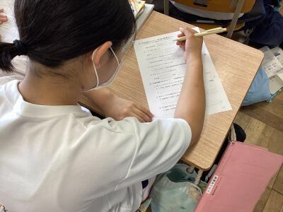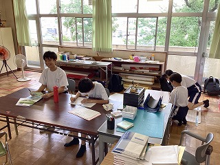 先日行われた定期試験の返却を行っています。結果に一喜一憂しながらも、先生の解説を落ち着いて聞いていました。テストの振り返りを行い、今後の学習に生かせたらいいですね。