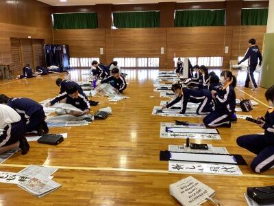 1,2年生の廊下にも生徒たちが心を込めて書いた書き初めが掲示されています。一文字一文字に新しい一年への決意や抱負が込められており、その力強い筆使いが見る人の心を動かします。ぜひ学校にお越しの際は、立ち止まり生徒たちの思いが込められた作品をじっくりとご覧ください。