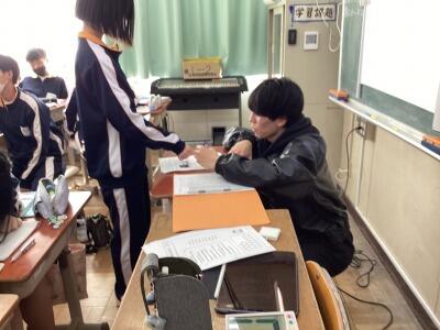 3年音楽、三送会と卒業式で歌う曲の音取りです。クラス全体で素晴らしい歌声を響かせていました。