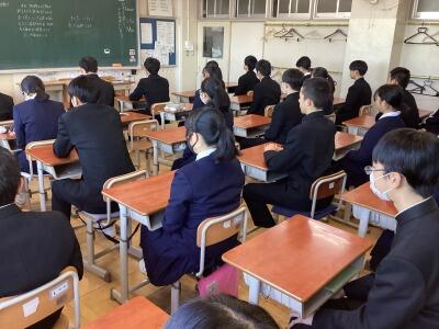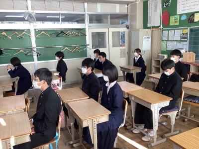 インフルエンザなどの感染症拡大を危惧して、教室にて放送を聞く形で実施しました。