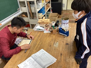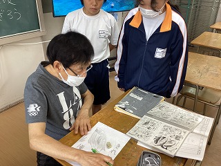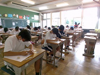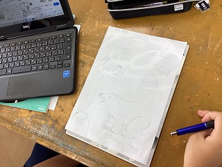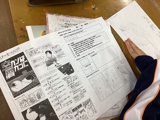 1年生美術は、ポスター作製です。どうしたら伝わるかを考えています。