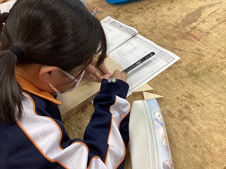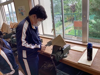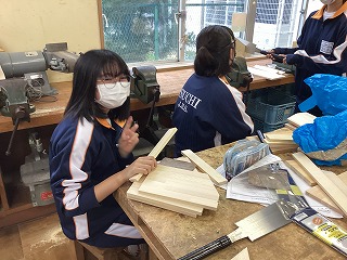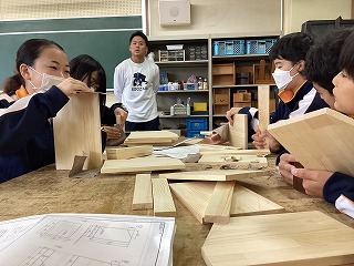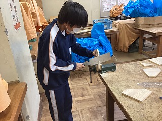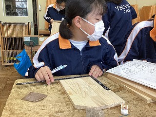 2組はくみひも作りを体験しました。生徒たちは伝統の工芸品を作ることをしていました。