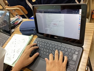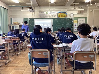 1年生英語 canを用いた文を学び、「あの夏のルカ」を英語吹き替えで見ています。