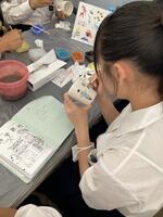 1組はマグカップ作りを体験しました。それぞれが思い思いの絵を描いて、オリジナルのマグカップを作っていました。