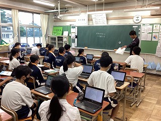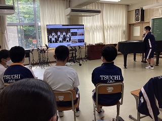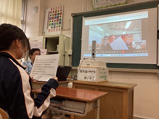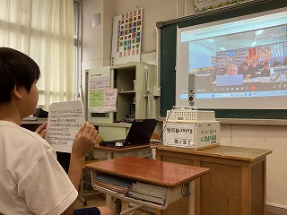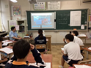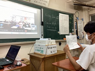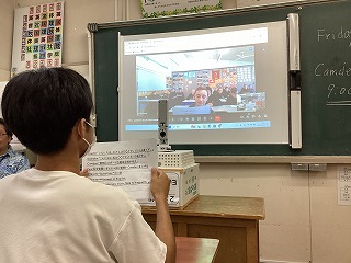 オーストラリアにあるキャムデン高校の生徒とオンラインで交流を行いました。相手校の画面が映ると、生徒たちは大歓喜。英語と日本語を交えてコミュニケーションをとりました。最後は両校画面に駆け寄って親睦を深めました。