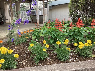学校のいたるところに素敵なお花が植わっています。今の季節は日日草やマリーゴールド、アルストロメリアなどを見ることができます。用務員さんが日々水やりや剪定を行い、学校環境を整えています。