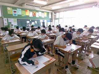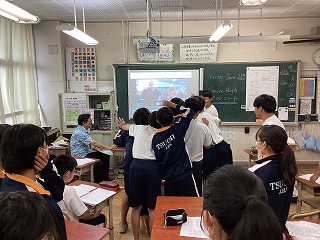 4時間目に林間学校で踊る予定のマイムマイムを練習しました。9月にある林間学校に向けて学年で一つになれるよう、日々精進してまいります。