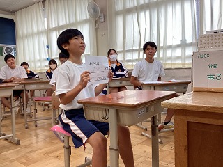1年生英語 自分たちで問題を作りクイズ大会をしています。