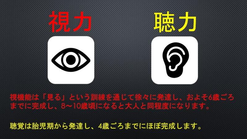 〇私が特に注目するのは視力や聴力です。これも同じく人生で一番能力が高いのは、九歳から十歳頃で、よく子どもが「穴のあくほど何かをよく見ている」と表現するのはそのためとも言えます。夏に孫娘が公園で、足元のアリの行列をじっと眺めたまましばらく動かないことがたびたびあり、こちらからすると「一体何が楽しいのか?」と一瞬思ってしまいます。