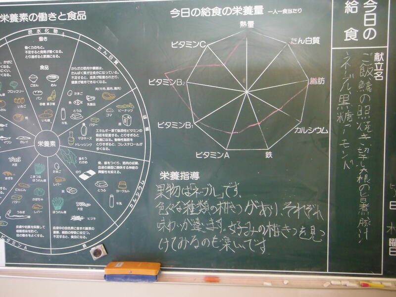 牛乳 ご飯 鰆の照焼き 切干大根の旨煮 豚汁 ネーブル 黒糖アーモンド