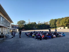 今日、子どもたちへ放送で「地震時に、大人がいないときには、倒れてきそうなものや、落ちてきそうなものから身を守ることをまず考えて行動しましょう」と呼びかけました。