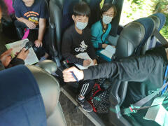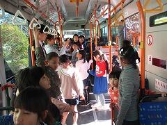 バスの中ではそれぞれのクラスでレクを行い楽しく過ごしています。