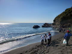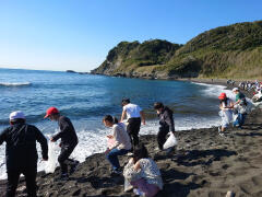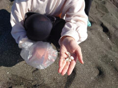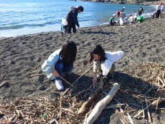 その後は、ビーチコーミングをしました。浜に打ち上げられたものを集めたり観察したりする活動のことです。