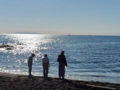 所員の方の注意事項の中に、海への入水はやめておこうね、というのがありましたが、そこはおこちゃまです。打ち寄せる波の方へ波の方へ。