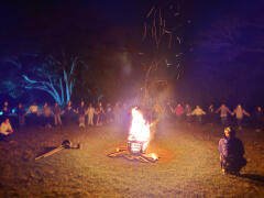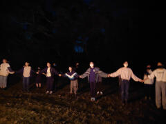 今日のメインイベント。キャンプファイヤーです。火を囲んでダンスやゲームをしたり、歌を歌ったりしました。