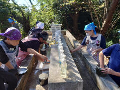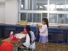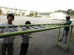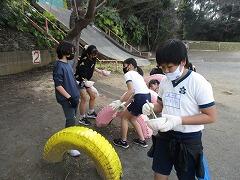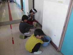 トイレの掃除、傘立ての掃除、廊下のライン補修、校庭のロープはり、遊具のペンキ塗り、扇風機カバーづくり、家庭科室ガスコンロ掃除、外掃除…自分たちができることに午後の2時間、生き生きと取り組みました。