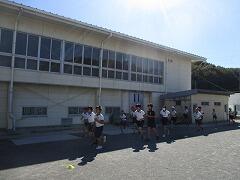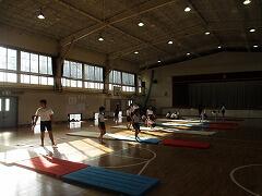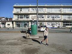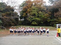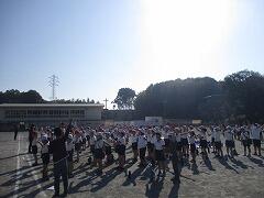 月水金の業間休みは、全校一斉に持久走の練習をします。ラジオ体操で準備運動をしたら開始です。