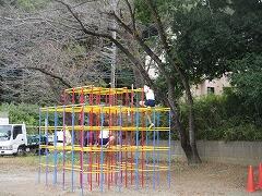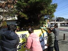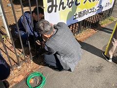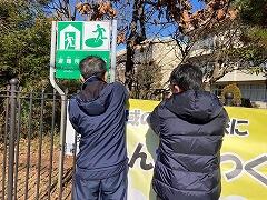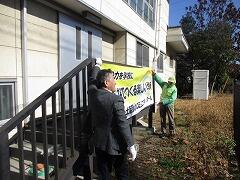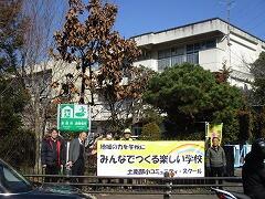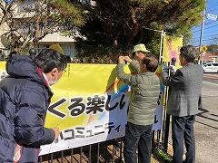 今日は、できあがって届けられた横断幕を5名の委員のみなさんと取り付けました。