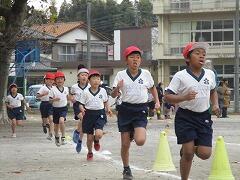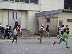 職員は、子どもたちと一緒に走ったり、顔色を確認しながら反対周りに走ったりしながら子どもの安全に気を付けながら取り組ませています。先生方もけがには気を付けてください。