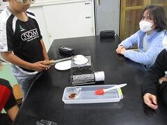 所員の方の説明をよく聞いています。