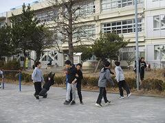 今日は今年度最後の昼休みでした。寒風吹きすさぶ中、元気に遊ぶ子どもたちの姿です。